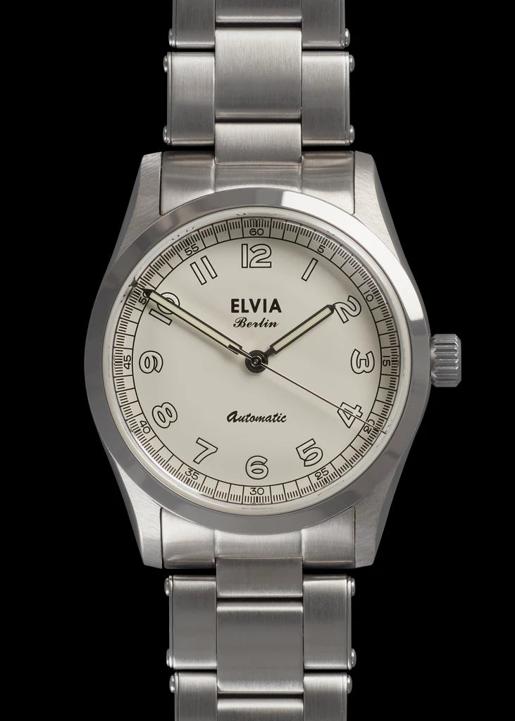 Home / Horloges / Elvia 1950s patroon 25 juwelen automatisch, 200m waterbestendig horloge met retro lichtgevende verf, saffierglas en een retro 1950s stijl armband