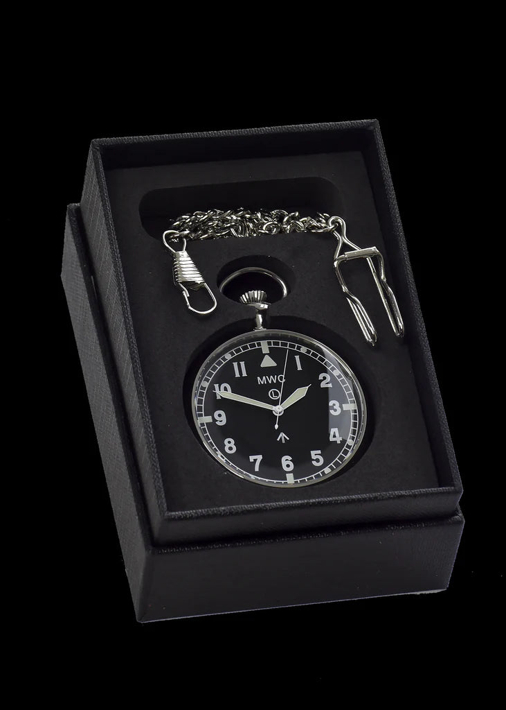 Militaire zakhorloges ervaren, samen met hun civiele equivalenten, een aanzienlijke stijging in populariteit. Historisch gezien werden ze gebruikt voor zowel land- als maritieme toepassingen. Tijdens de Tweede Wereldoorlog kregen ze vaak de voorkeur van RAF- en USAAF-navigators en bommenrichters (VS: bombardiers) boven conventionele polshorloges. Vliegtuigbemanningen vonden het gemakkelijker om een zakhorloge op een kaart, bank of in de neus van het vliegtuig te plaatsen terwijl ze werkten of een doel naderden. Bovendien waren de polshorloges van die tijd klein, met een gemiddelde diameter van slechts 32 mm, waardoor de grotere zakhorloges, bijna 50 mm groot, veel gemakkelijker te lezen waren. Wij bieden verschillende varianten van dit horloge aan met verschillende specificaties om aan de specifieke eisen van onze klanten te voldoen. Deze specifieke variant is voorzien van een automatisch uurwerk met 24 juwelen en een gangreserve van 41 uur. Het horloge kan indien nodig ook met de hand worden opgewonden en beschikt over een hackfunctie voor synchronisatie of om energie te besparen wanneer het langere tijd niet wordt gebruikt. SPECIFICATIES: Diameter: 47,5 mmLengte met kroon: 58 mmDikte: 14 mmKristalbreedte: 40 mmKristaltype: koepelvormig glasMateriaal kast: roestvrij staalAchterkant kast: roestvrij staalHelderheid: LuminovaUurwerk: NH35A, 24-steens uurwerk met 41 uur gangreserve en mogelijkheid tot handopwinding indien nodigInclusief: Compleet met kettingVerpakking: Geleverd in de originele doosGarantie: 2 jaar fabrieksgarantie
