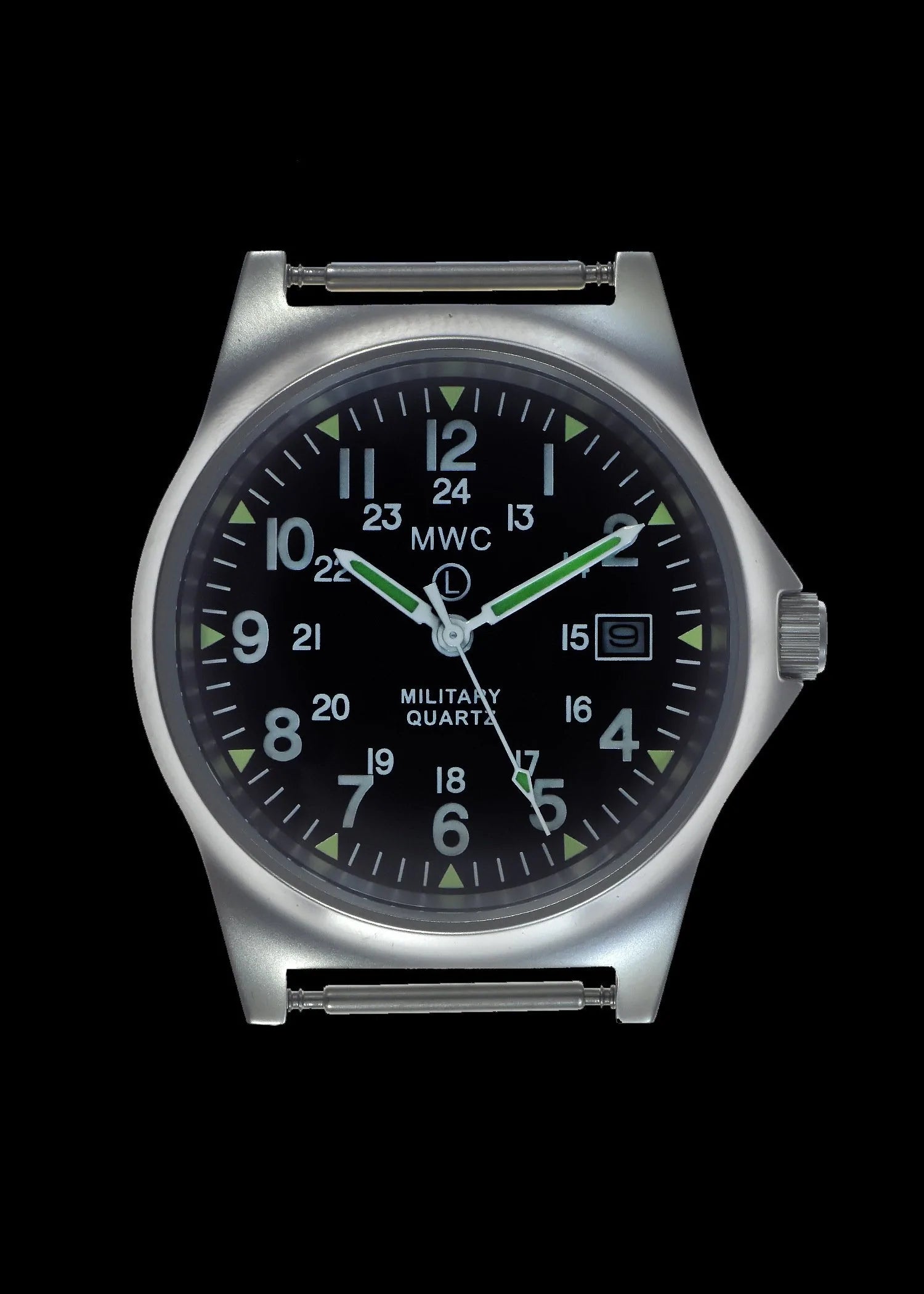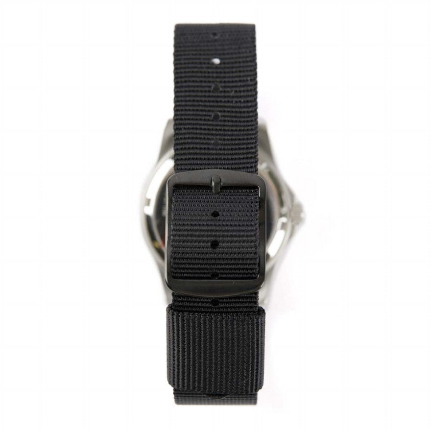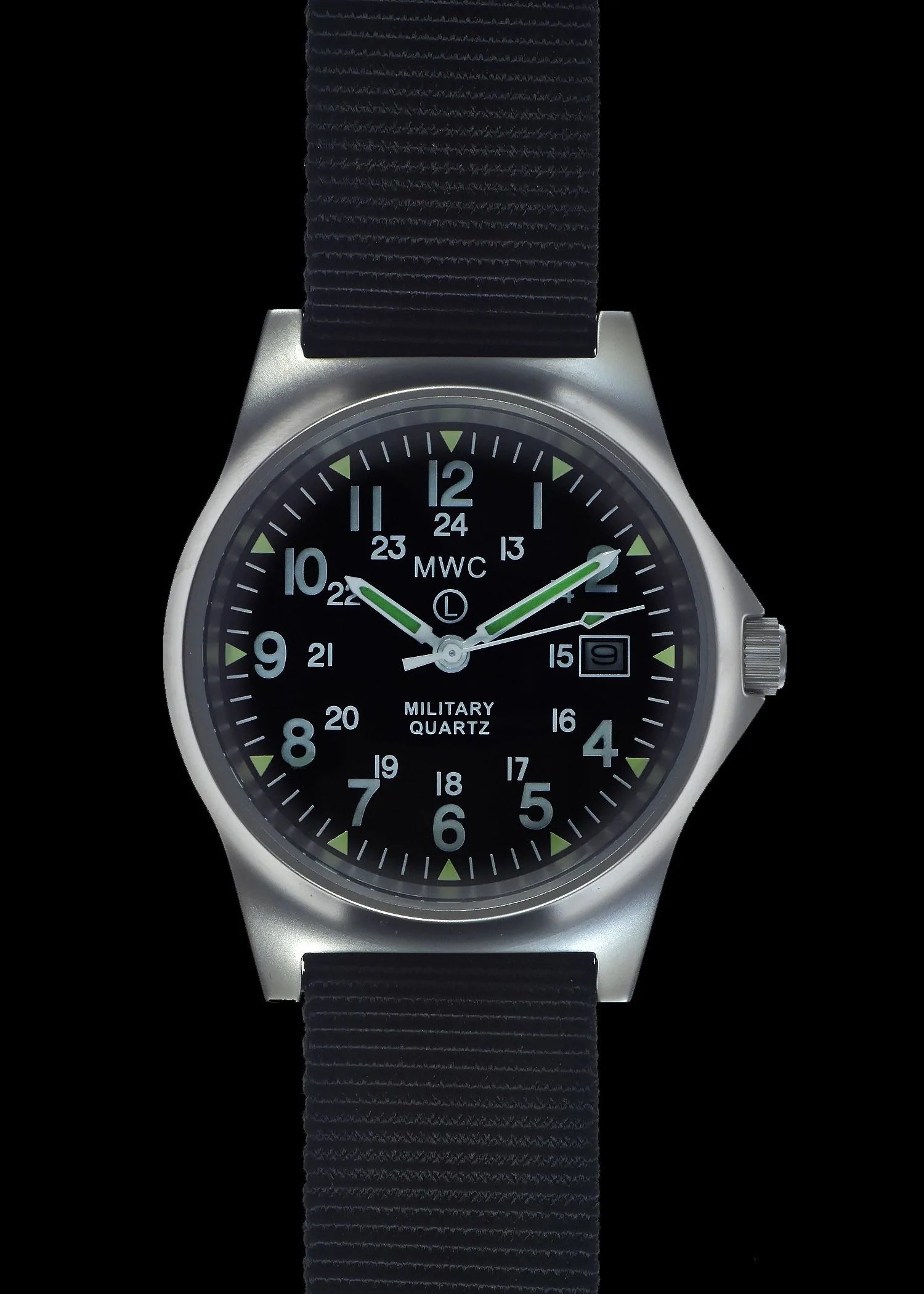 De Military Watch Company G10 modellen in roestvrij staal zijn gemaakt aan de hand van de hoogste militaire eisen voor productie wereldwijd. Dit specifieke G10 model heeft een zeer accuraat quarts uurwerk. Daarnaast maakt dit horloge gebruik van een zogeheten 12/24 wijzerplaat hetgeen het leger gespecificeerd heft om naast de normale (Amerikaanse) tijd ook de legertijd weer te geven. Daarnaast bevat dit horloge een datum functie. Specificaties: Kast diameter: 39mm Dikte: 11mm Bandaanzet: gefixeerd Wijzerplaat: zwart Kast: roestvrij staal 316L Achterkant kast: roestvrij staal 316L Waterdichtheid: 50 meter Uurwerk: Quartz Lichtgevend materiaal: Super Luminova Bandje: 18mm NATO band Batterijduur: 36 maanden Garantie: 24 maanden Komt in MWC blik Levertijd 1-2 dagen Over Military Watch Company Military Watch Company is een in Zwitserland gebaseerd horlogebedrijf, opgericht in 1974 door Wolfgang Obrigheimer, die zijn hele leven militaire horloges heeft verzameld, ontworpen en geproduceerd. Sinds de oprichting richt het bedrijf zich uitsluitend op het ontwerpen en produceren van horloges met militaire specificaties. Military Watch Company produceert momenteel voor de defensies van verschillende landen horloges alsmede het re-produceren van de exacte horloges gebruikt door militairen in de jaren 1930-1980.