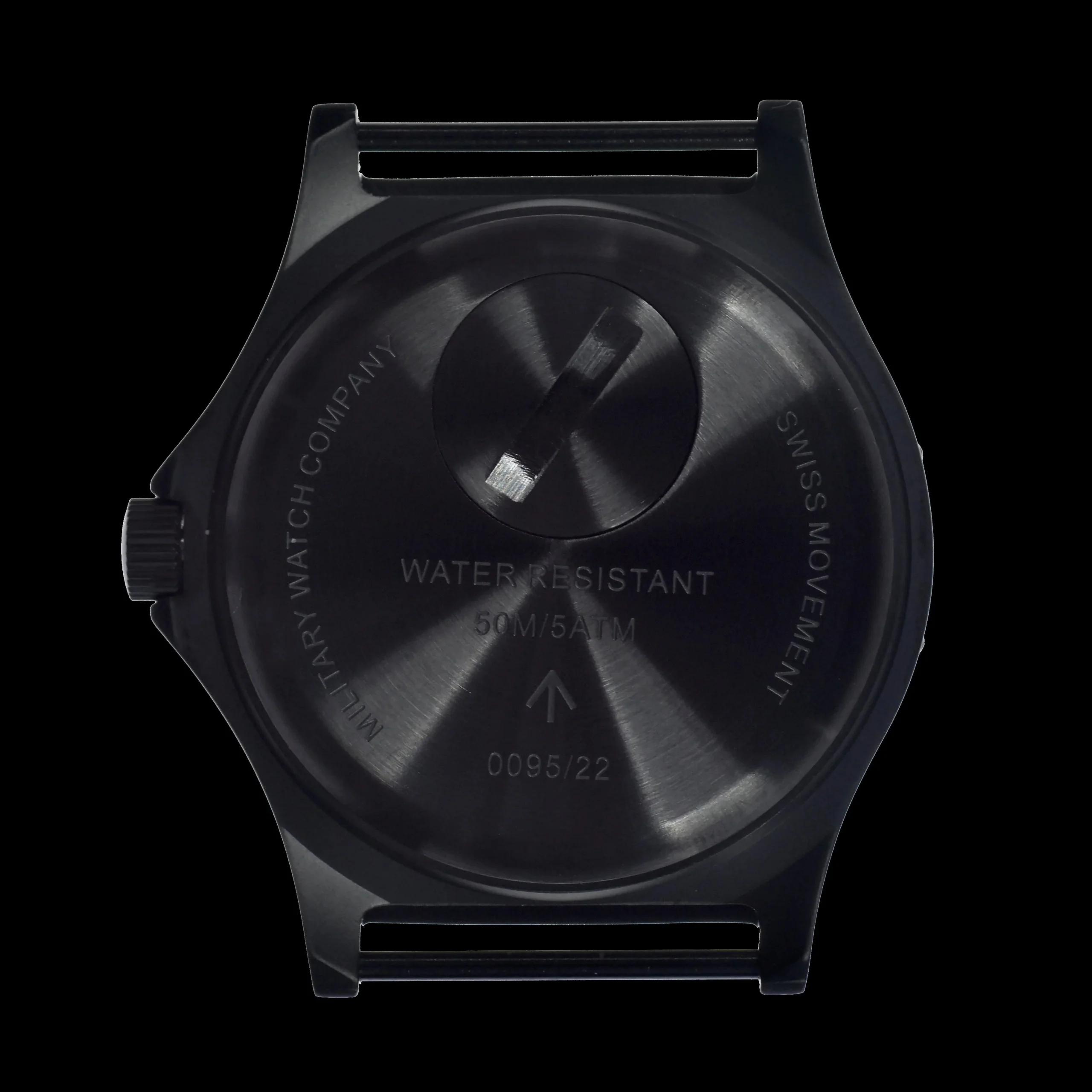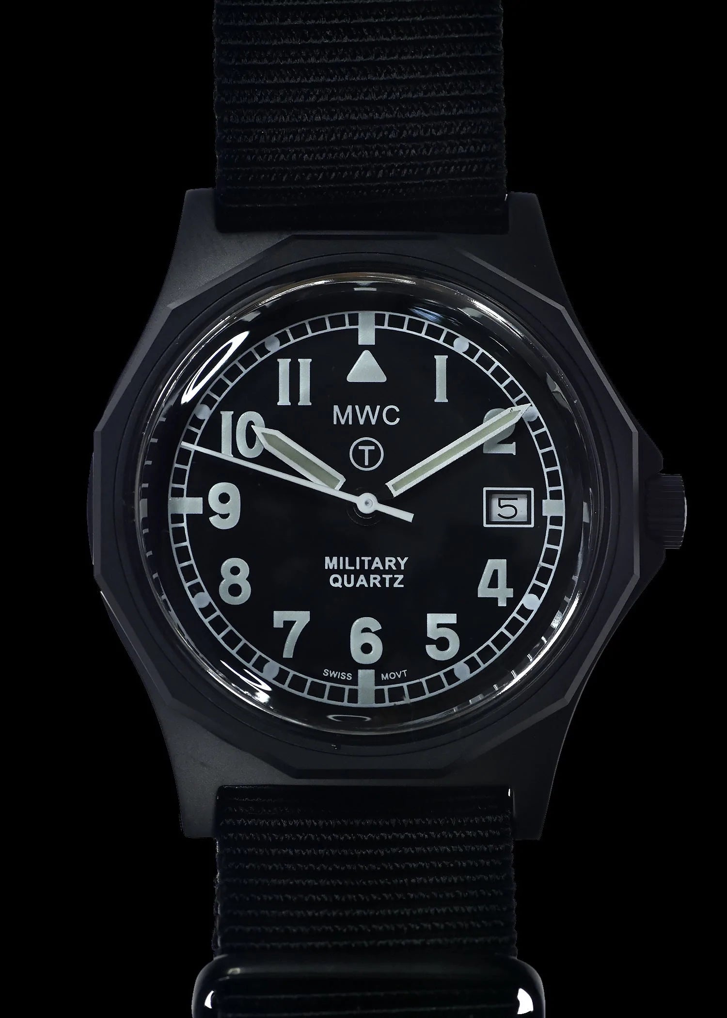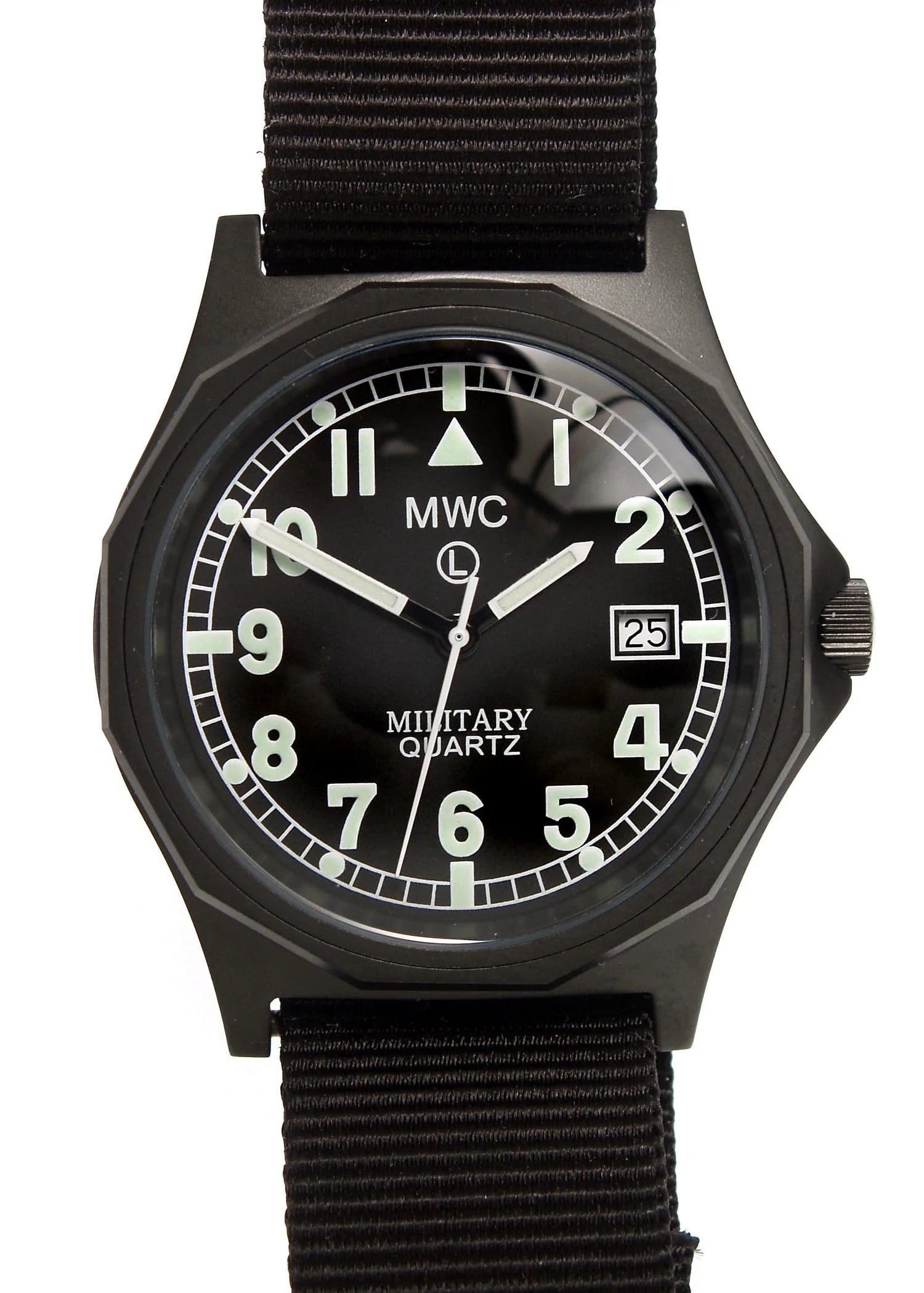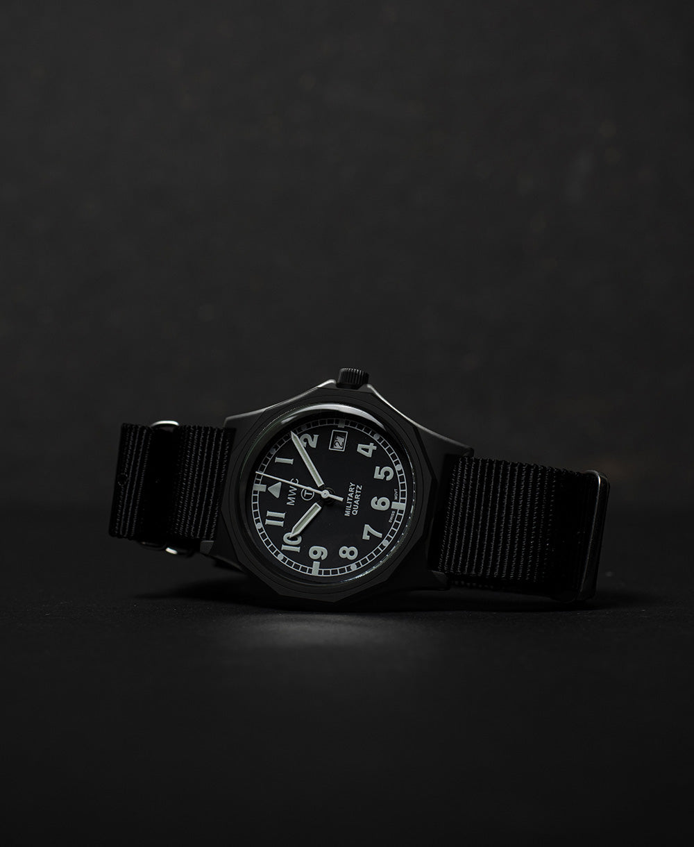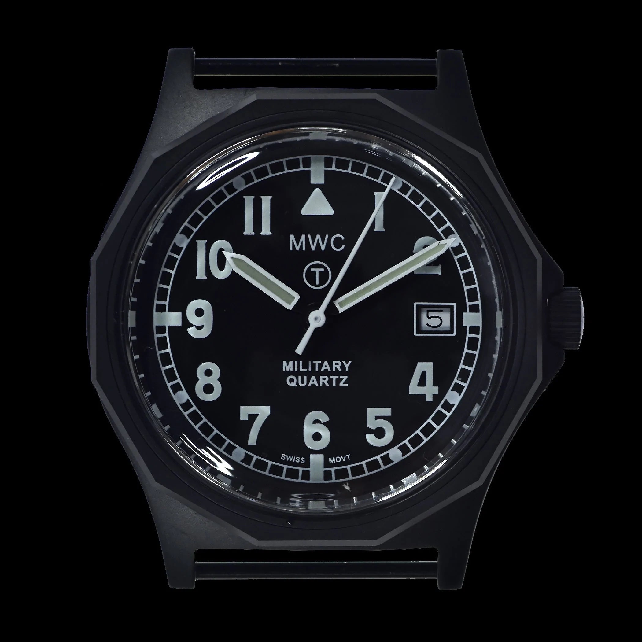 De MWC G10 modellen in 316L roestvrij staal zijn gemaakt aan de hand van de hoogste militaire eisen voor productie wereldwijd. Dit specifieke G10 model heeft een zeer accuraat Ronda 705/75 quartz uurwerk met datum functie, een waterdichtheid van 50 meter gecombineerd met een batterijleven van maar liefst 60 maanden. Dit horloge is zeer robuust en is ontworpen om extreme omstandigheden te overleven, met een gefixeerde bandaanzet wordt geleverd met een NATO horloge band en de achterkant van de kast bevat verscheidene contract markeringen, uniek voor ieder horloge. Deze speciale “oak” uitvoering betreft een gelimiteerde kast met een 12-hoekig patroon voor een extra robuuste uitstraling tezamen met een militaire PVD coating in matzwarte voor ultra anti-reflectie tijdens missies. Het horloge bevat verder een Super Luminova coating voor een extreem duurzame “glow-in-the-dark” zichtbaarheid. Ook al bevat dit horloge uiteraard geen radioactieve deeltjes, de omcirkelde T op de wijzerplaat verwees hier vroeger wel naar - momenteel zit dit op de wijzerplaat om het historisch correct te maken. Specificaties Kast diameter: 39mm (inclusief kroon) Dikte: 11,5 mm Bandaanzet: gefixeerd Wijzerplaat: zwart Kast: roestvrij staal 316L Achterkant kast: roestvrij staal 316L Waterdichtheid: 50 meter Uurwerk: Zwitsers Ronda Quartz uurwerk met datumfunctie Lichtgevend materiaal: Super Luminova Bandje: 2 x 18mm NATO band Batterijduur: 36 maanden Garantie: 24 maanden Glas: gehard mineraal glas Over Military Watch Company Military Watch Company is een in Zwitserland gebaseerd horlogebedrijf, opgericht in 1974 door Wolfgang Obrigheimer, die zijn hele leven militaire horloges heeft verzameld, ontworpen en geproduceerd. Sinds de oprichting richt het bedrijf zich uitsluitend op het ontwerpen en produceren van horloges met militaire specificaties. Military Watch Company produceert momenteel voor de defensies van verschillende landen horloges alsmede het re-produceren van de exacte horloges gebruikt door militairen in de jaren 1930-1980.