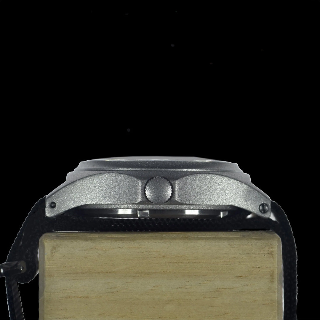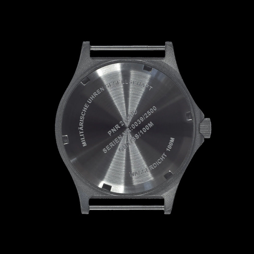 Dit GMT militaire horloge in roestvrij staal bevat een hoge kwaliteit RONDA 515.24 uurwerk in een 100 meter waterdichte kast met een datum functie. Het GMT principe is een zeer slim principe omdat het idee erachter zo simpel is; door een dubbele tijdsaanduiding kan de gebruiker de tijd in twee verschillende tijdzones tegelijkertijd zien. Military Watch Company produceerde deze horloges in eerste instantie enkel voor militaire piloten maar heeft besoten deze nu ook voor het algemene publiek aan te bieden. Het GMT horloges is erg robuust gemaakt om de meest extreme condities te overleven. De achterkant van de kast bevat verscheidene contractuele markeringen, uniek aan ieder horloge. Specificaties: Kast diameter: 40mm Dikte: 13mm Bandaanzet: gefixeerd Wijzerplaat: zwart Kast: roestvrij staal 316L met militaire anti-reflectieve PVD coating in Gunmetal Achterkant kast: roestvrij staal 316L Waterdichtheid: 10 ATM (100 meter) Uurwerk: RONDA 515.24 met datum functie Glas: gehard mineraal glas Lichtgevend materiaal: Super Luminova Bandje: 2x 20mm NATO band, zwart en grijs Levertijd 1-2 dagen Over Military Watch Company Military Watch Company is een in Zwitserland gebaseerd horlogebedrijf, opgericht in 1974 door Wolfgang Obrigheimer, die zijn hele leven militaire horloges heeft verzameld, ontworpen en geproduceerd. Sinds de oprichting richt het bedrijf zich uitsluitend op het ontwerpen en produceren van horloges met militaire specificaties. Military Watch Company produceert momenteel voor de defensies van verschillende landen horloges alsmede het re-produceren van de exacte horloges gebruikt door militairen in de jaren 1930-1980.