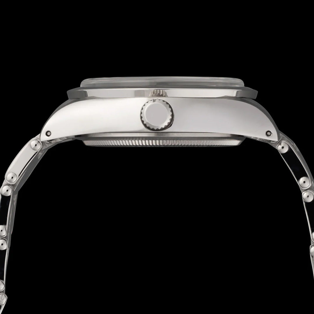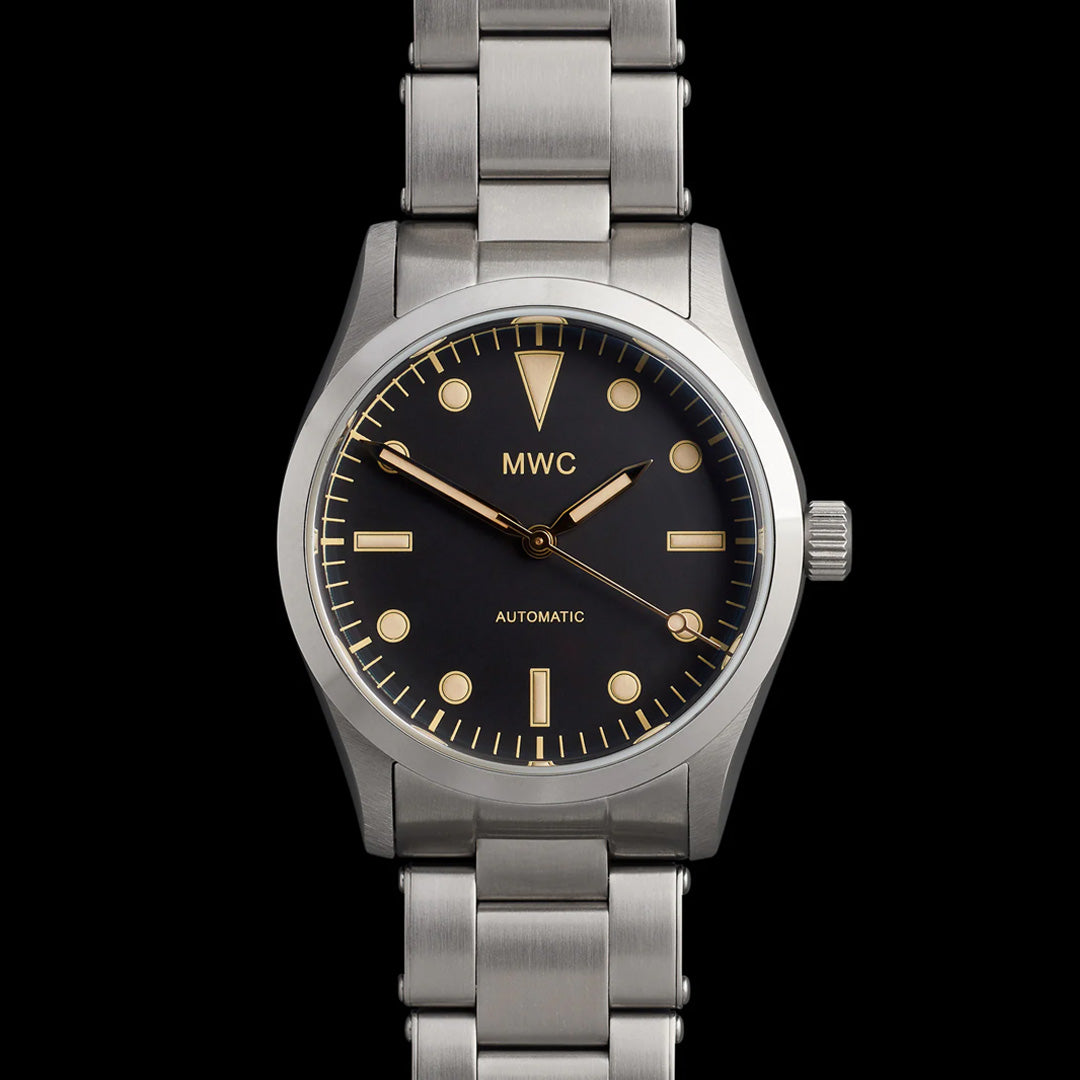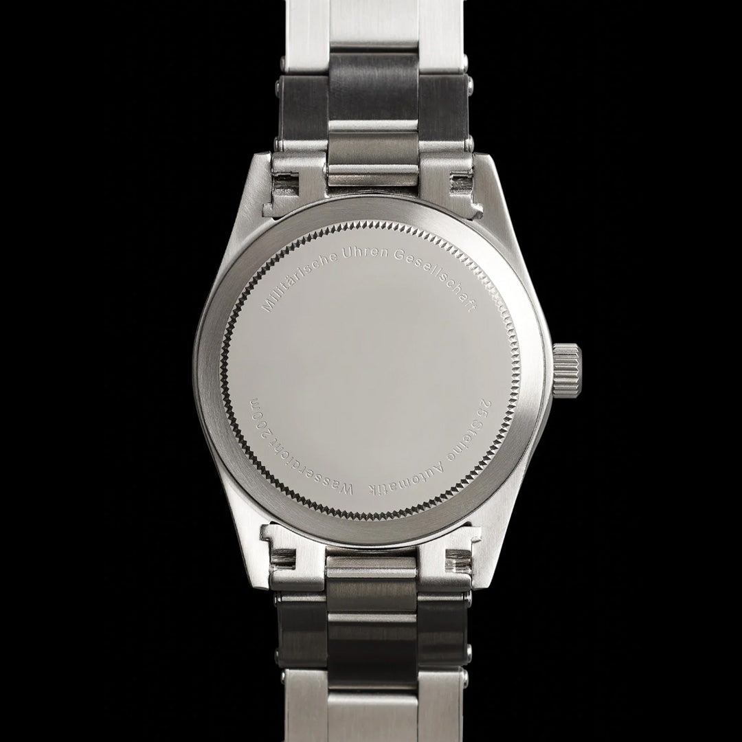 Dit "Adventurer" horloge van Military Watch Company is gebaseerd op een jaren 50/60 horloge gemaakt voor verkenningsmissies. Dit horloge heeft een hoogwaardig Zwitsers Sellita SW200 uurwerk dat bekend staat om zijn compacte formaat, betrouwbaarheid en robuustheid. Het Zwitserse automatische uurwerk heeft 25 Juwelen, een gangreserve van 25 uur en kan ook met de hand opgewonden worden én heeft een "hack" functie (secondestop). Daarnaast komt het horloge met een hoogwaardig saffier kristallen glas dat voor historische reden op een dusdanig manier geconstrueerd is dat het lijkt op saffierglas om echt de originele 1950/1960 look na te bootsen, maar dan met super hoogwaardig glas (en dus geen plexiglas!). Ten laatste bevat het horloge Luminova op de wijzers als lichtgevend materiaal en deze hebben een speciale kleur meegekregen om die speciale vintage look te creëren. Het horloge heeft een diameter van 39mm en komt met een stalen band die ontworpen is om de exacte look van die 1950/1960 militaire horloges te recreëren. This watch measures 39mm in diameter and is fitted with a matching steel bracelet which is designed specifically to look visually the same as the type of bracelets used in the 1960s. Specificaties: Kast diameter: 39,5mm (inclusief kroon) Dikte: 13.3mm Bandaanzet: veerpennen Wijzerplaat: zwart Kast: roestvrij staal 316L Achterkant kast: roestvrij staal 316L met schroefbank achterzijde Waterdichtheid: 200 meter Uurwerk: Zwitsers automatisch SW200 uurwerk Lichtgevend materiaal: Luminova Bandje: 20mm Retro Roestvrij stalen band Glas: saffierglas Levertijd 1-2 dagen Over Military Watch Company Military Watch Company is een in Zwitserland gebaseerd horlogebedrijf, opgericht in 1974 door Wolfgang Obrigheimer, die zijn hele leven militaire horloges heeft verzameld, ontworpen en geproduceerd. Sinds de oprichting richt het bedrijf zich uitsluitend op het ontwerpen en produceren van horloges met militaire specificaties. Military Watch Company produceert momenteel voor de defensies van verschillende landen horloges alsmede het re-produceren van de exacte horloges gebruikt door militairen in de jaren 1930-1980.