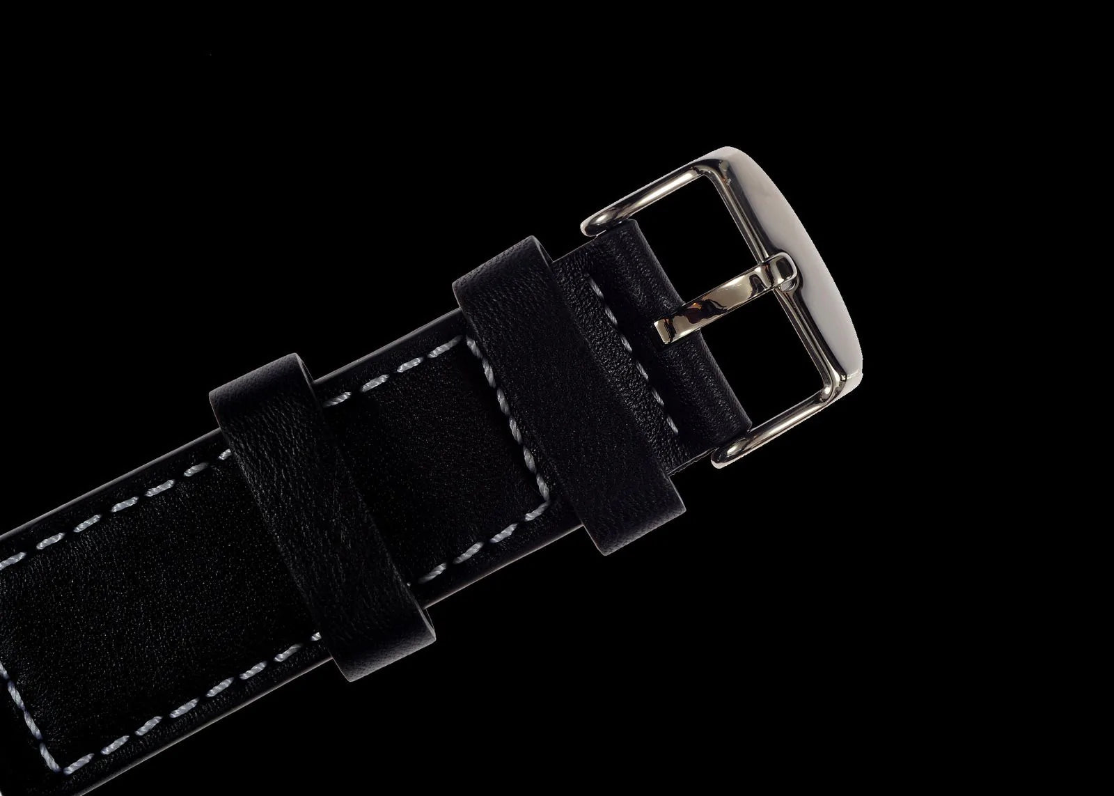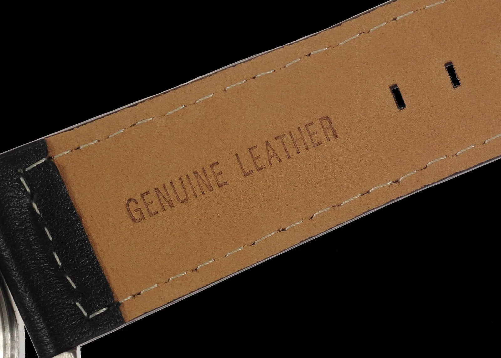 Dit Military Watch Company horloge behoort tot de top van de top van de luchtmacht collectie en is volledig gebaseerd op een exact design uit de jaren 1940/1950 gemaakt voor militaire piloten.Het horloge bevat een hoogwaardig automatisch uurwerk dat met een vloeiende seconde wijzer en een doorzichtige glazen achterkant een ultra premium look & feel geeft. De kast van het horloge is 46mm exclusief kroon, en is met deze grootte iets groter dan de rest van de collectie. Over Military Watch Company Military Watch Company is een in Zwitserland gebaseerd horlogebedrijf, opgericht in 1974 door Wolfgang Obrigheimer, die zijn hele leven militaire horloges heeft verzameld, ontworpen en geproduceerd. Sinds de oprichting richt het bedrijf zich uitsluitend op het ontwerpen en produceren van horloges met militaire specificaties. Military Watch Company produceert momenteel voor de defensies van verschillende landen horloges alsmede het re-produceren van de exacte horloges gebruikt door militairen in de jaren 1930-1980. Specificaties: Kast diameter: 46mm exclusief kroon Dikte: 15mm Kroon: Schroefkroon Wijzerplaat: zwart Kast: roestvrij staal 316L Achterkant kast: Doorzichtige achterkant voor volledig zicht op uurwerk Waterdichtheid: 100 meter Uurwerk: NH35A 24-juwelen automatisch uurwerk Glas: gehard kristal, kraswerend Lichtgevend materiaal: Luminova Bandje: 24mm Luxe Lederen Horlogeband met Zijstiksel Levertijd 3-5 dagen