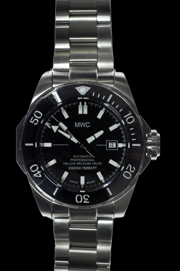 Maak kennis met het MWC "Depthmaster" 100ATM Military Diver Watch, een van onze nieuwste en meest robuuste modellen. Dit 100% Zwitserse duikhorloge is ontworpen om extreme omstandigheden te doorstaan, met saffierglas en een waterbestendigheid van 100ATM (1.000 meter / 3.280 voet). Het is geschikt voor duiken met gemengde gassen op extreme diepten en heeft een bredere band van 24 mm en een krasvrije keramische lunette, waardoor het gemakkelijker vast te pakken is in extreme kou. Deze horloges zijn speciaal gemaakt voor professionele duikers die te maken hebben met zeer uitdagende omstandigheden. Helium-ontsnappingsventiel Alle MWC 100ATM-modellen zijn uitgerust met een helium-ontsnappingsventiel. Deze functie pakt het probleem aan van heliummoleculen die het horloge binnendringen. Heliummoleculen zijn extreem klein, waardoor ze de afdichtingen van het horloge kunnen binnendringen, zelfs wanneer andere gassen en water dat niet kunnen. Dit kan gebeuren bij saturatieduiken, waarbij duikers langere tijd op grote dieptes onder hoge druk doorbrengen. Heliumophoping in het horloge kan interne druk creëren, wat mogelijk ernstige schade kan veroorzaken of zelfs het glas of de kroon kan laten barsten wanneer deze wordt losgeschroefd. Dit is met name gevaarlijk tijdens tijdcontroles of resets. De helium-ontsnappingsklep laat deze moleculen automatisch vrij tijdens decompressie, waardoor het horloge terugkeert naar normale druk op zeeniveau zonder dat er externe elementen binnenkomen. Belang van helium bij diepduiken Helium is cruciaal voor diepzeeduiken omdat het geen stikstofnarcose veroorzaakt, in tegenstelling tot stikstof. Helium vervangt stikstof in de meeste diepzeeduiktoepassingen met gemengd gas. Professionele duikers die langdurig op grote diepte werken, leven vaak in droge omgevingen die onder druk staan met een zuurstof/heliummengsel. Bij het bovenkomen en decomprimeren moet dit gas veilig worden verwijderd om potentieel gevaarlijke situaties te voorkomen, zoals het eruit blazen van het kristal of de kroon, wat letsel kan veroorzaken. Specificaties Uurwerk: Hoogwaardige Sellita SW200, 28.800 bph, 26 juwelen, 38 uur gangreserve met hackfunctie Waterbestendigheid: 100ATM / 3.280ft / 1.000m Kroon: Schroefvergrendeling Helium-ontsnappingsventiel: Ja Afmetingen: Breedte: 45mm Dikte: 15,8 mm Lunette Type: Unidirectioneel niet-reflecterend met keramische inzet Kristaltype: Saffier met antireflectiecoating* Behuizing: 316L roestvrij staal Verlichting: Super Luminova op markeringen, wijzers en lunette Band: 24 mm NATO-webbingband (1 x zwart en 1 x grijs) Voordelen van saffierkristal Synthetische saffier is het beste materiaal voor horlogekristallen vanwege de uitzonderlijke sterkte en weerstand tegen breken en krassen. Deze eigenschappen maken het zeer aantrekkelijk voor militair en veiligheidspersoneel, politieagenten en personen met een actieve levensstijl buitenshuis, goed voor meer dan 70% van onze klanten. Ter vergelijking: meer dan 90% van de incidenten met gebarsten kristal betreft horloges met mineraalglaskristallen. Zelfs geharde mineraalkristallen kunnen niet tippen aan de duurzaamheid van saffier onder ongunstige omstandigheden. Saffierkristallen worden hittebehandeld om interne spanningen te verwijderen, waardoor ze sterker worden. Ze zijn gemaakt met twee lagen antireflectiecoating. Interessant genoeg wordt saffierkristal nu ook gebruikt in de nieuwste iPhone-modellen. Hoewel saffierkristal duurder is, wordt het doorgaans aangetroffen in duurdere horloges vanwege de superieure kwaliteiten.