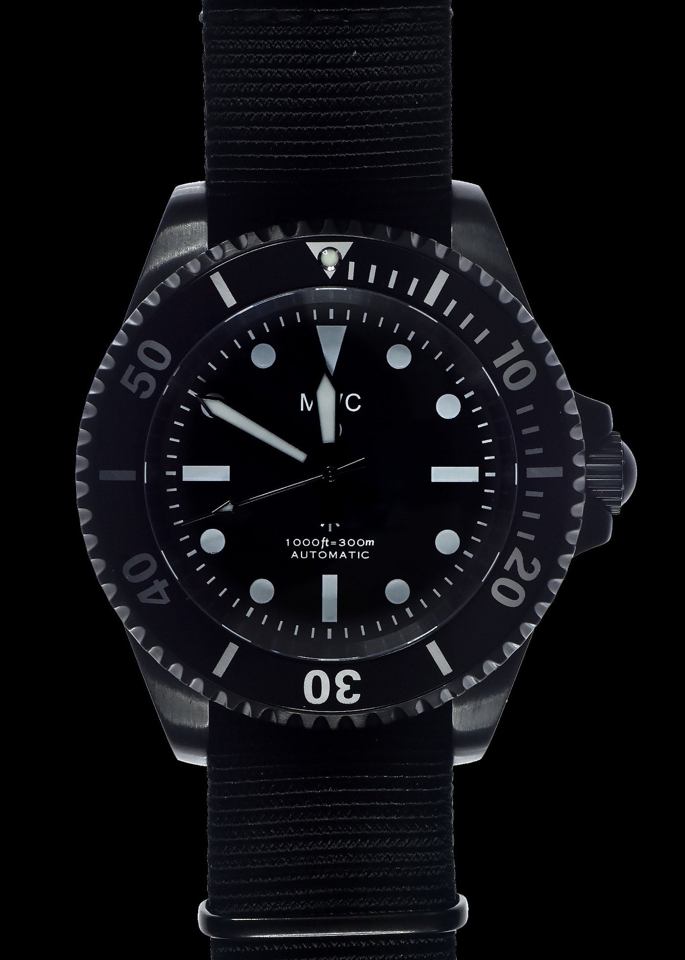 MWC 24 Jewel 1982 Pattern 300m Automatic Militair Divers Horloge in Black PVD with a Sapphire Crystal on a NATO Webbing Strap (Non Date Version) – Authentiek Militair Design