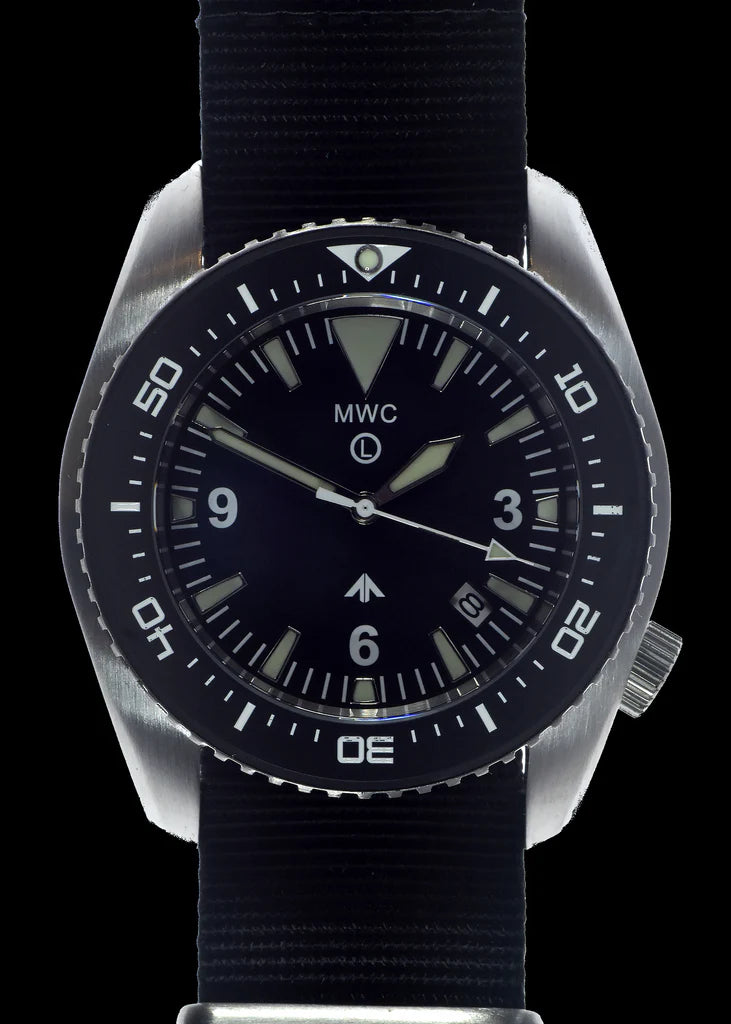 De MWC Kampfschwimmer (Military Diver) 500m waterbestendige modellen, uitgerust met een helium ontsnappingsventiel, maken deel uit van MWC's nieuwste heavy-duty serie duikershorloges. Deze modellen hebben een aanzienlijk robuustere kast dan de meeste andere militaire duikhorloges, samen met extra kroonbescherming. Ze hebben ook een slagvast saffierglas en een krasbestendige keramische lunette. De Kampfschwimmer-serie heeft een bredere band van 24 mm, vergeleken met de typische band van 20 mm van de meeste militaire duikershorloges, en een dikkere lunette voor een betere grip. Deze eigenschap werd gespecificeerd in een aanbestedingscontract, omdat deze horloges speciaal zijn ontworpen voor gebruik door politie- en militaire duikers en in opblaasboten die in koude en extreme omgevingen werken. Dit specifieke model heeft een wijzerplaat met Europees NATO-patroon en is afgewerkt in geborsteld roestvrij staal. Het uurwerk is een hoogwaardige 24-jazzige automaat met een hacking-functie voor synchronisatie en een gangreserve van 41 uur. Afmetingen en specificaties: Beweging: 24 Juweel Automatisch met hackfunctieWaterbestendigheid: 500m / 1640ftHelium ontsnappingsventielKroon: Schroef naar beneden vergrendelingBreedte inclusief kroon: 48mmBreedte zonder kroon: 43mmDikte: 16mmGewicht inclusief band: 120gKristal Diameter: 31mmKristal Type: Splinter- en krasbestendige saffier met antireflecterende coatingVan lug tot lug: 50mmKast: 316L roestvrij staalVerlichting: Luminova op markers en wijzersType uiteinde: VeerBand: 24mm NATO Webbing BandVoordelen van saffierkristal:Synthetisch saffier is het beste materiaal voor horlogekristallen vanwege de uitzonderlijke sterkte en weerstand tegen versplintering en krassen. Deze eigenschappen maken het zeer aantrekkelijk voor militair en veiligheidspersoneel, politieagenten en mensen met een actieve levensstijl buitenshuis. Meer dan 70% van onze klanten behoort tot deze groepen. Om een idee te geven: bij ongevallen met gebarsten kristallen gaat het in meer dan 90% van de gevallen om horloges met mineraalglazen kristallen. Hoewel geharde minerale kristallen duurzamer zijn dan gewoon glas, kunnen ze nog steeds niet tippen aan de duurzaamheid van saffier. Saffieren kristallen krijgen een warmtebehandeling om interne spanningen te verwijderen, waardoor ze nog sterker worden. De superieure sterkte van saffierkristal is ook de reden waarom het wordt gebruikt in de nieuwste iPhones. Hoewel het duurder is, wordt saffierkristal om deze redenen meestal gebruikt in horloges uit het hogere segment. Deze eigenschappen maken de MWC Kampfschwimmer een uitstekende keuze voor wie op zoek is naar een robuust, betrouwbaar en stijlvol horloge dat geschikt is voor zowel professioneel duiken als veeleisend dagelijks gebruik.