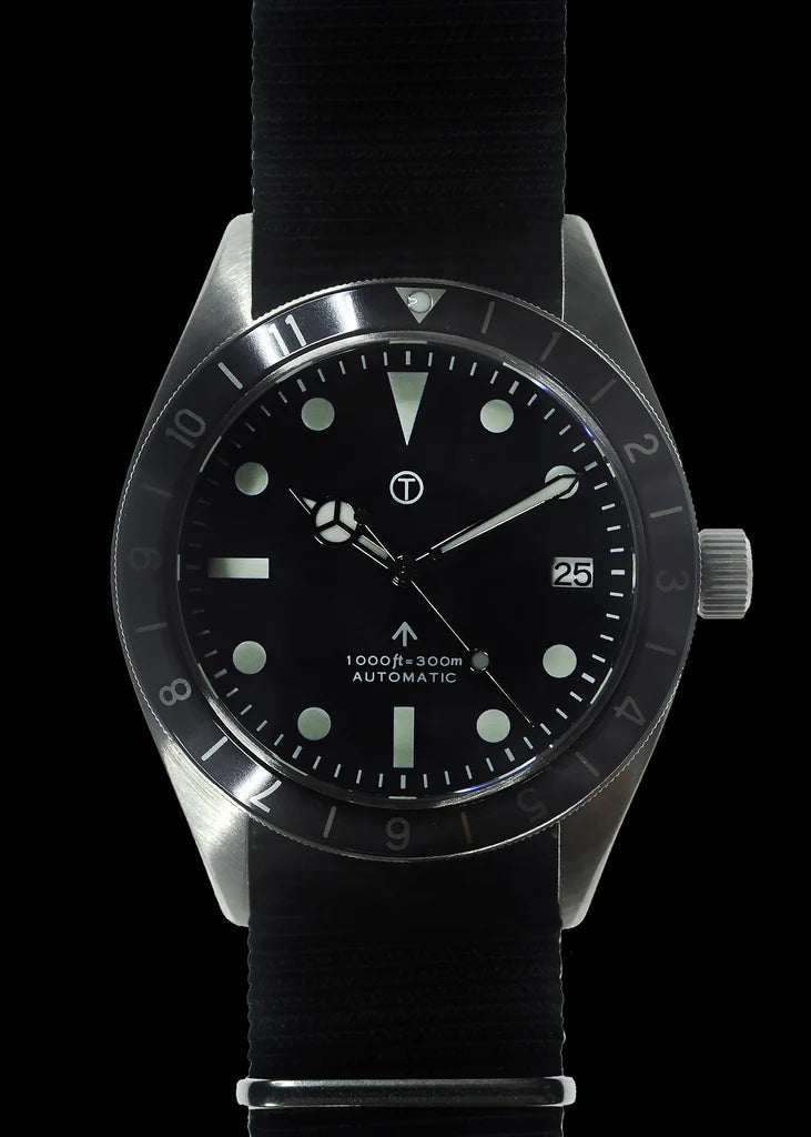 Hoewel dit horloge Luminova gebruikt in plaats van Tritium (gebruikelijk in de jaren 60), heeft het een omcirkelde "T" op de wijzerplaat voor historische nauwkeurigheid. Luminova verslechtert niet met de leeftijd en is niet-radioactief, wat zorgt voor een veiligere en langer durende luminescentie.