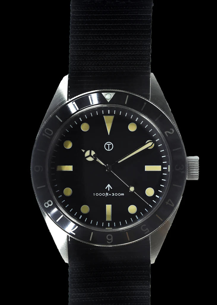 Hoewel dit horloge Luminova gebruikt in plaats van Tritium (gebruikelijk in de jaren 60), heeft het een omcirkelde "T" op de wijzerplaat voor historische nauwkeurigheid. Luminova verslechtert niet met de leeftijd en is niet-radioactief, wat zorgt voor een veiligere en langer durende luminescentie. De kleur van de verf bootst het uiterlijk van verouderd Tritium na, wat bijdraagt ​​aan de vintage uitstraling van het horloge.