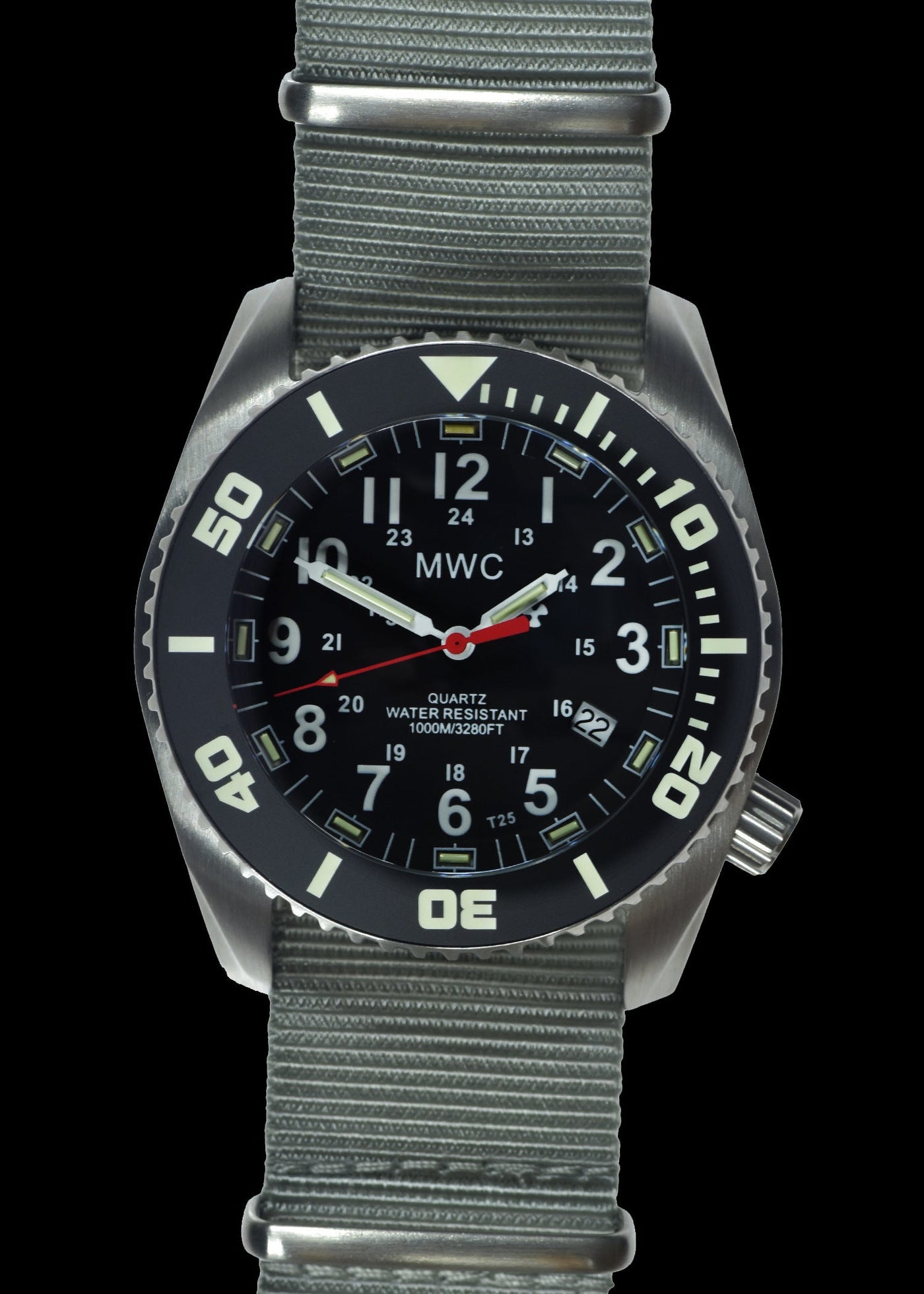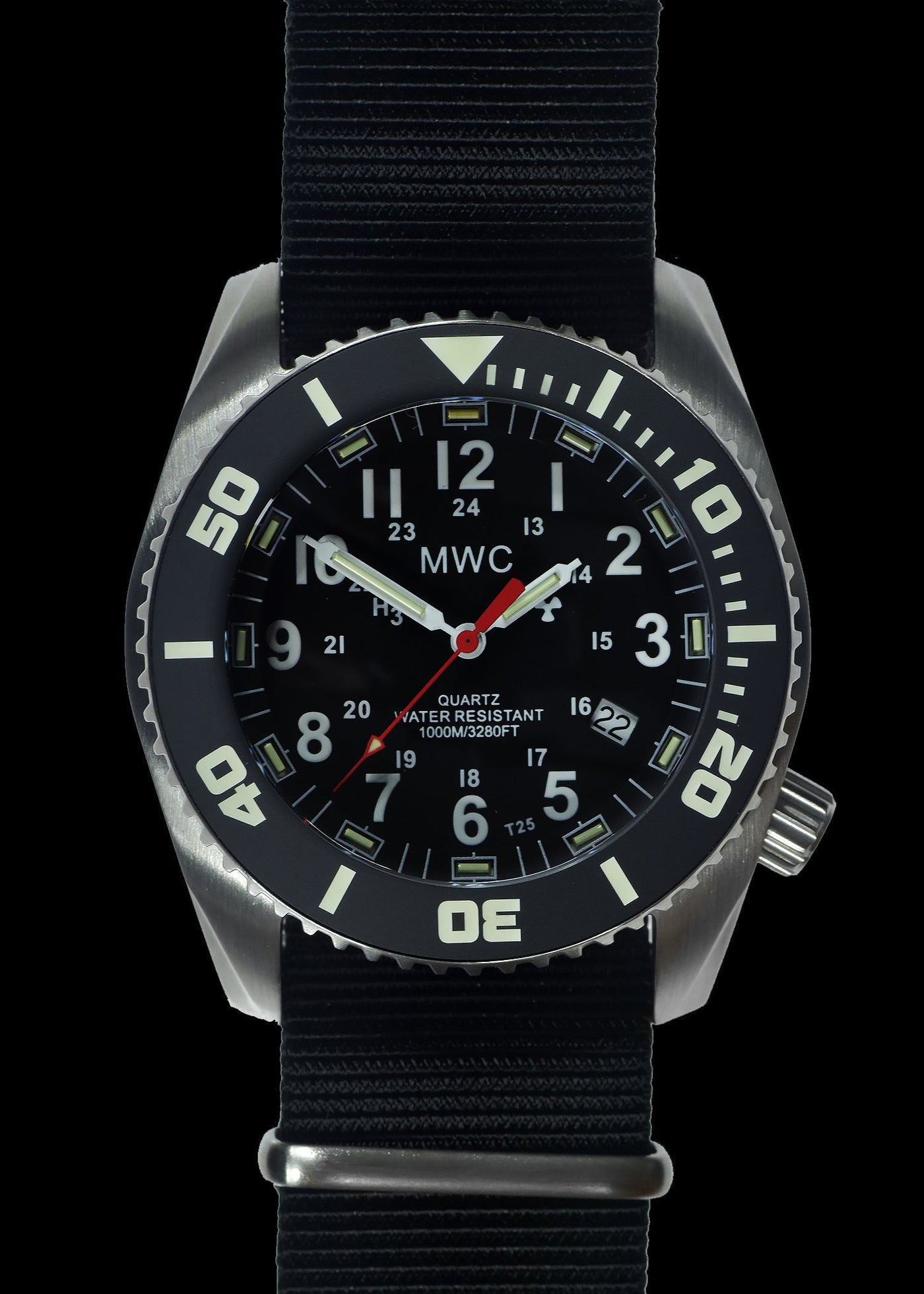 MWC "Depthmaster" 100atm / 3,280ft / 1000m Water Resistant Militair Divers Horloge in a Stainless Steel Case with GTLS and Helium Valve (10 Year Battery Life) – Authentiek Militair Design