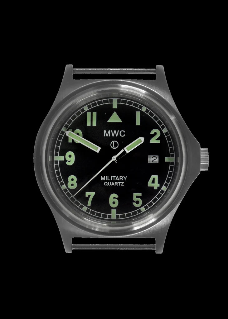 Dit MWC-model is een directe afstammeling van de G10-horloges die we in de jaren 80 maakten, met behoud van het populaire batterijklepje, een functie die door de meeste andere fabrikanten is weggelaten. In eerste instantie was het batterijklepje essentieel omdat de batterijen van vroege quartzhorloges maar ongeveer een jaar meegingen. Nu, met moderne batterijen die ongeveer vijf jaar meegaan, dient het klepje als een nostalgisch designdetail. Belangrijkste kenmerken: Heritage Design: Een directe afstammeling van onze originele G10-horloges uit de jaren 80, met behoud van het historisch populaire batterijklepje voor authenticiteit. Betrouwbaarheid op lange termijn: Deze variant van MWC's G10 is uitgebreid geëvalueerd door militair personeel wereldwijd gedurende meer dan 40 jaar, en heeft veel lof gekregen voor zijn duurzaamheid en betrouwbaarheid op lange termijn. De schroefkroon biedt superieure bescherming vergeleken met kwetsbaardere push-in kronen. Verbeterde zichtbaarheid 's nachts: Maakt gebruik van Luminova voor verbeterde zichtbaarheid 's nachts. Na voldoende activering door zonlicht of kunstlicht, gloeit de wijzerplaat in het donker. Grotere markeringen blijven vaak de hele nacht zichtbaar. Dit proces kan oneindig worden herhaald zonder veroudering en Luminova-pigmenten zijn volledig vrij van radioactiviteit. Robuust en duurzaam: Ontworpen om extreme omstandigheden te weerstaan, wordt dit horloge geleverd met zowel een actuele grijze NATO-webbingband als een zwarte band. Er is ook een breed scala aan extra bandkleuren beschikbaar voor aankoop. Specificaties: Kastdiameter: 40 mm (exclusief kroon), 42 mm (inclusief kroon) Dikte: 11,5 mm Gewicht: 60g Wijzerplaatkleur: Zwart Helderheid: Luminova Kastmateriaal: satijnen afwerking 316L roestvrij staal Achterkant: 316L roestvrij staal Kroon: 316L roestvrij staal schroefkroon met vergrendeling Waterbestendigheid: 5 ATM (50m/165ft) Batterij: 371 met een batterijduur van ongeveer 60 maanden Kristal: Gehard mineraalglas Uurwerk: Ronda 705/715 met datumaanduiding Bandjes: Twee 20mm NATO-bandjes (één zwart en één grijs) Vaste militaire patroonbandstangen De achterkant van de kast draagt ​​verschillende unieke contractmarkeringen en een serienummer. Deze MWC G10 batterijluikvariant biedt een perfecte mix van historisch design en moderne functionaliteit, waardoor het een zeer betrouwbare keuze is voor zowel militair personeel als horlogeliefhebbers.