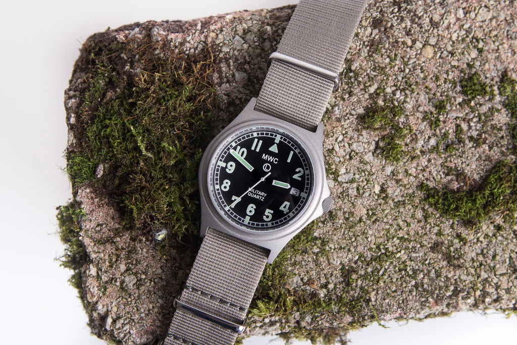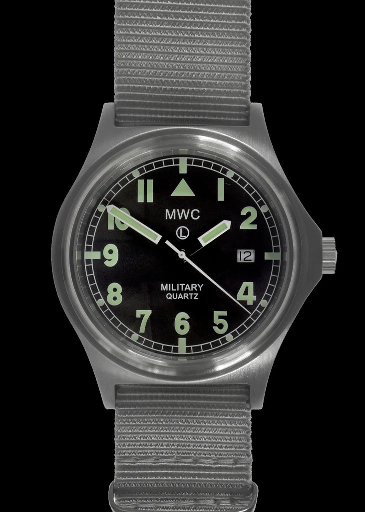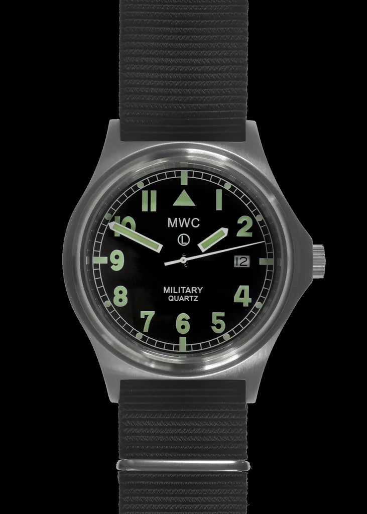MWC G10 50m (165ft) waterbestendig NATO-patroon militair horloge met satijnen kastafwerking, vaste bandstaven en 60 maanden batterijduur