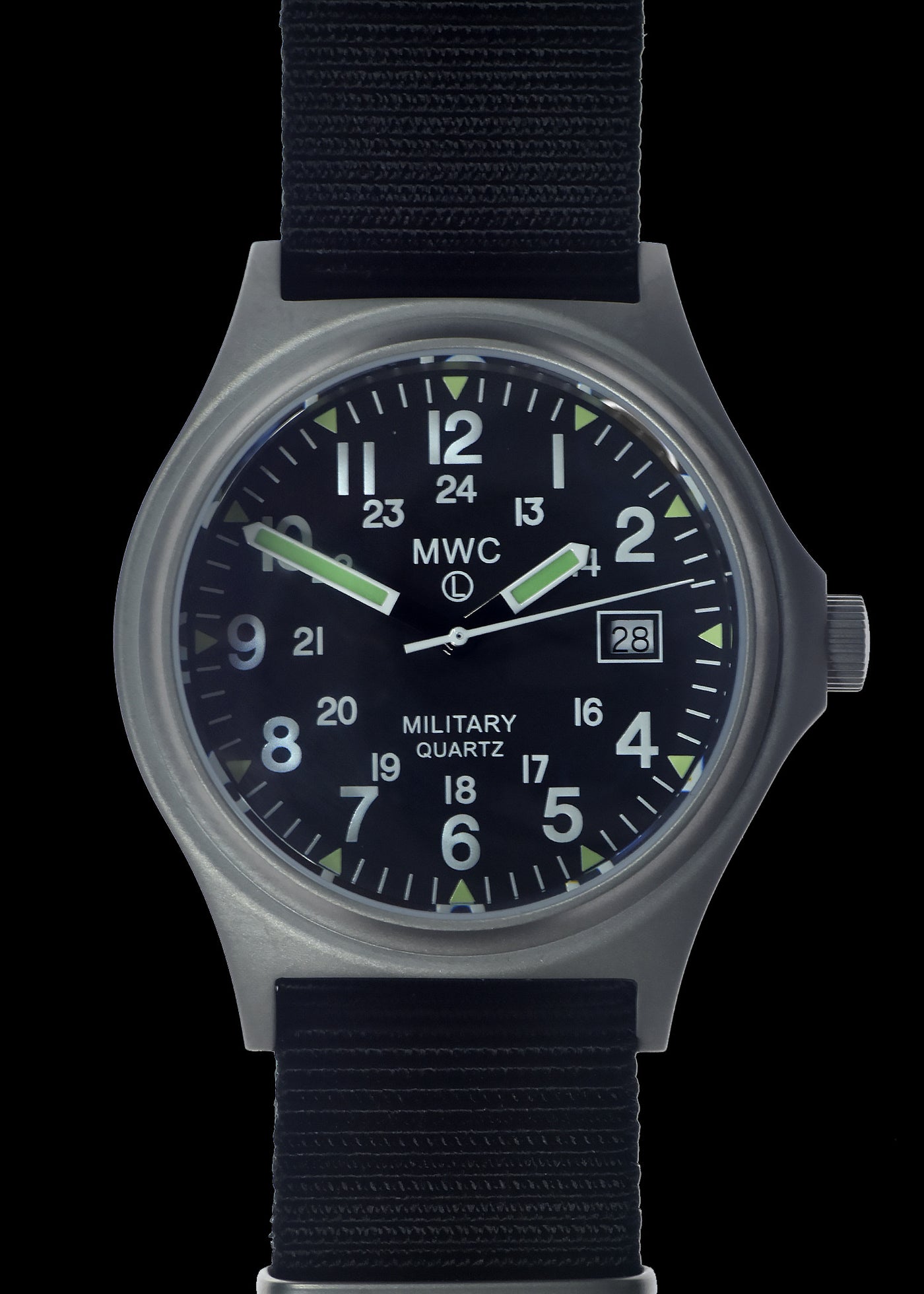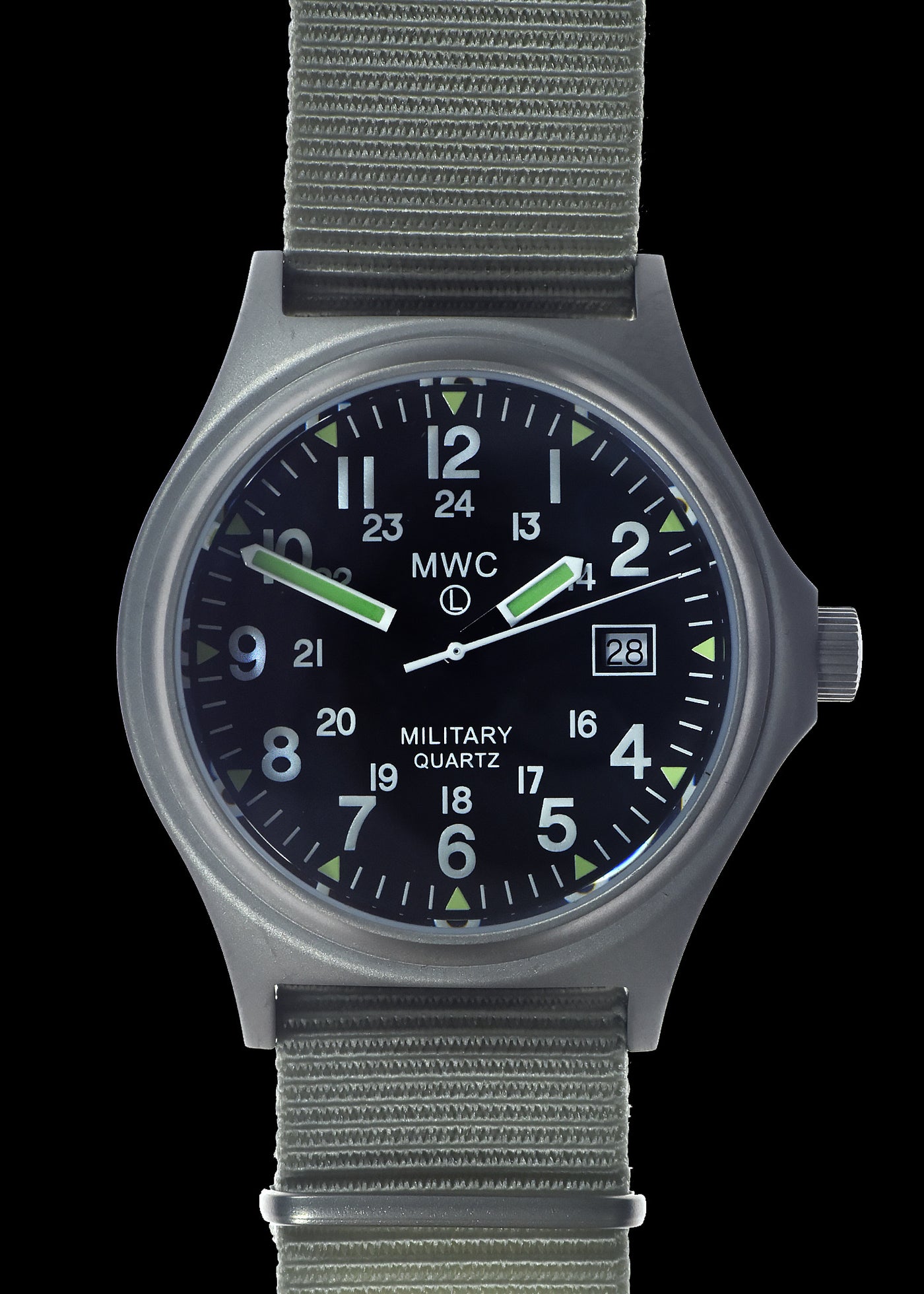 MWC G10BH 12/24 50m Water Resistant Militair Horloge with Battery Hatch, Fixed Strap Bars, Sapphire Crystal and 60 Month Battery Life – Authentiek Militair Design met hoogwaardig uurwerk en duurzaam ontwerp. Geschikt voor dagelijks gebruik en liefhebbers van militaire stijl.