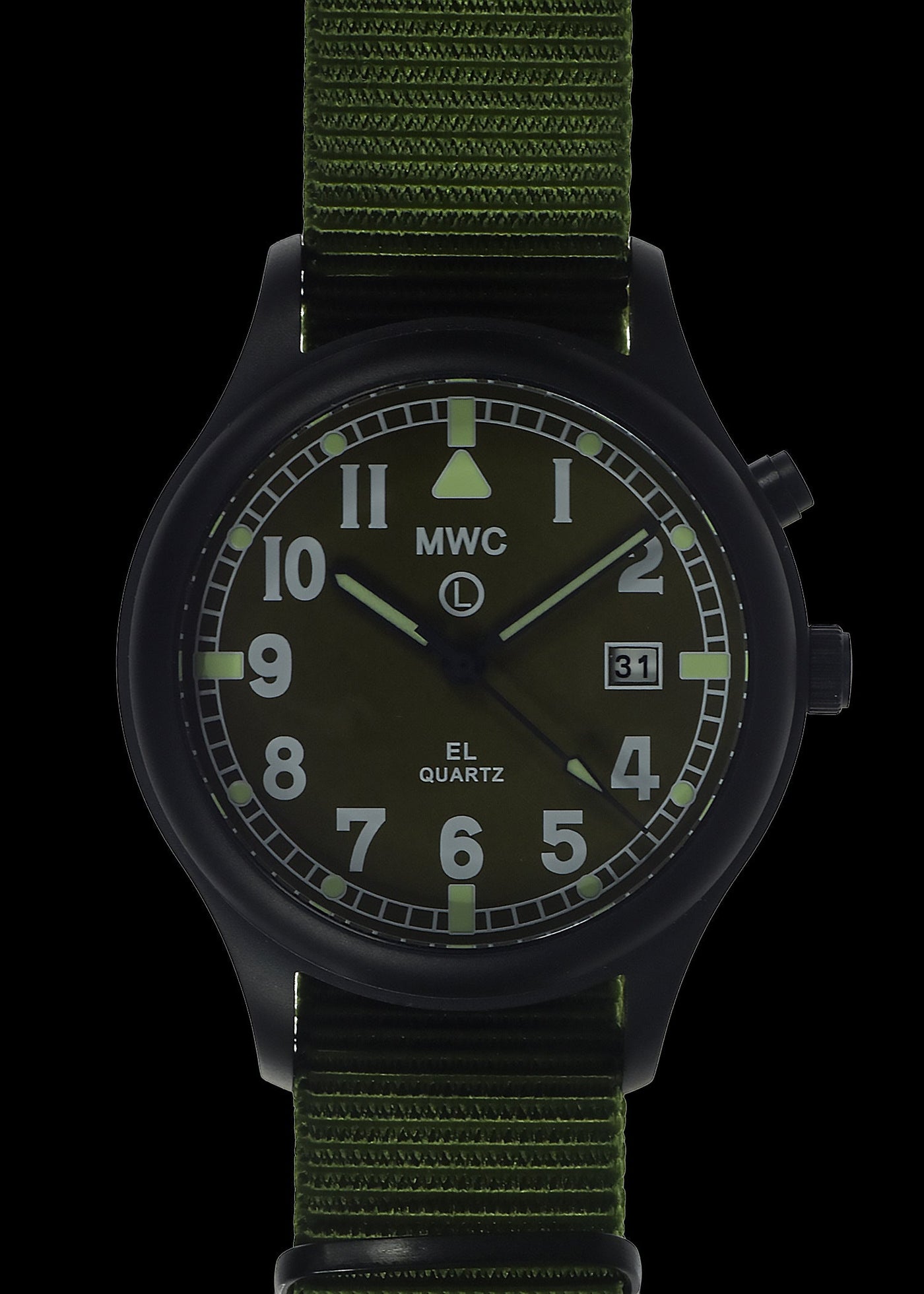 MWC G10EL Black PVD Steel General Service Horloge with Olive Drab Electroluminescent (EL) Backlit Dial – Authentiek Militair Design