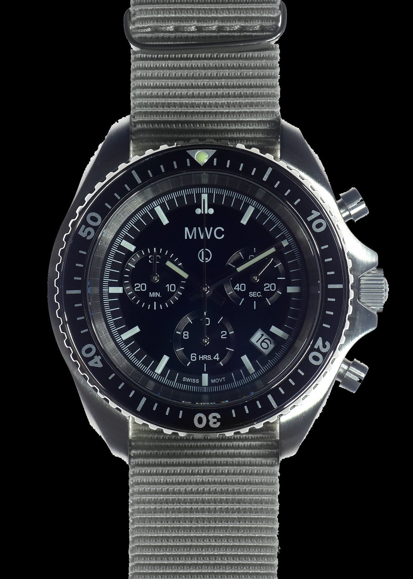 MWC NATO Pattern Stainless Steel Militair Pilots Chronograph with Sapphire Crystal and Swiss Ronda Movement – Authentiek Militair Design is een duurzaam chronograaf militair horloge met robuust design en betrouwbare prestaties.
