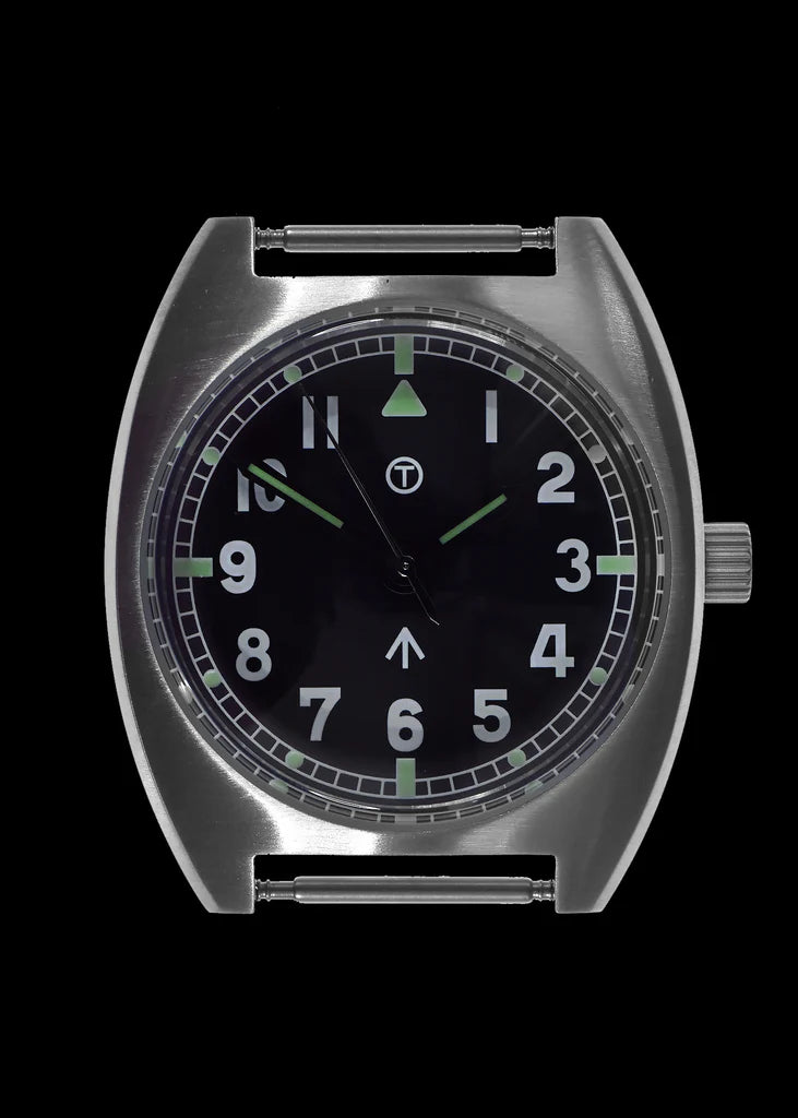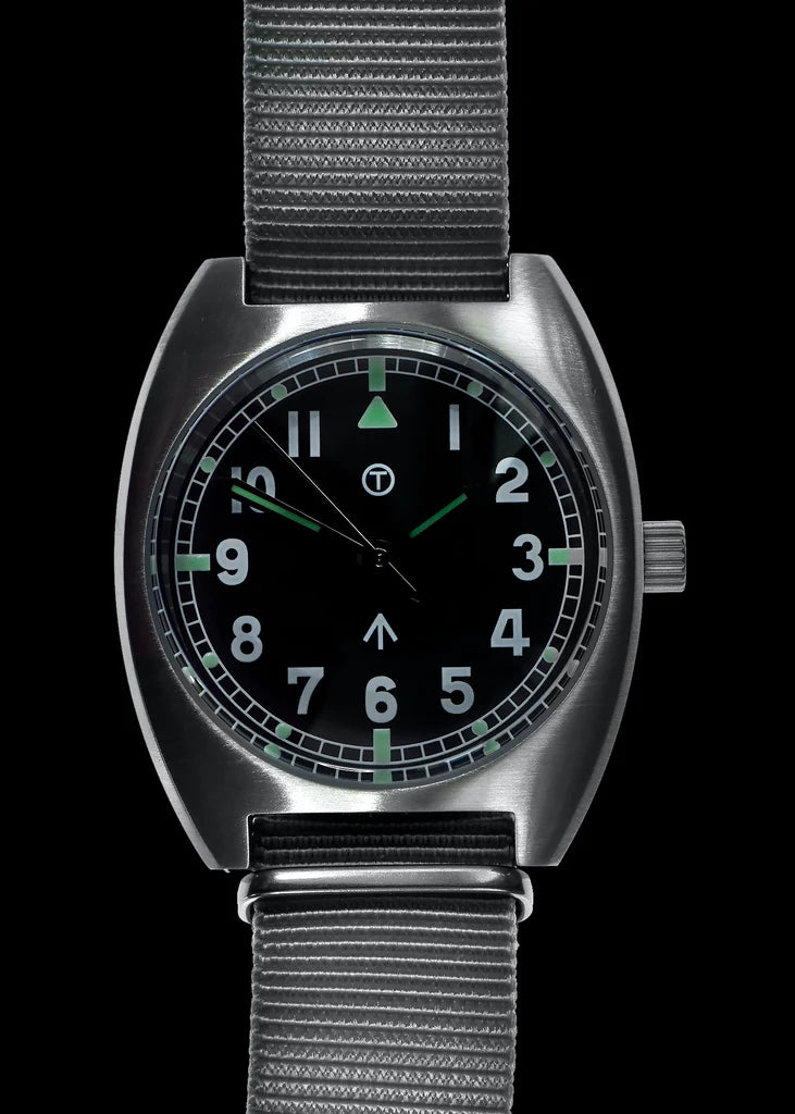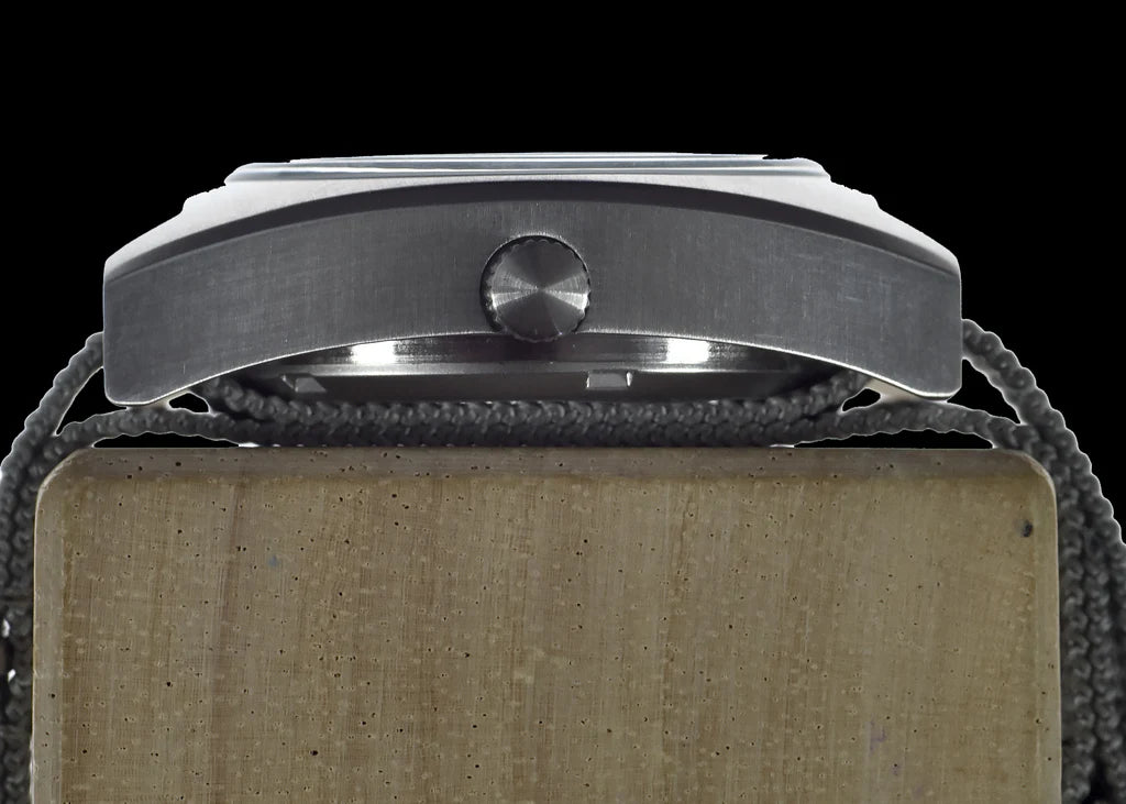 W10 hybride militair horloge De handgewikkelde mechanische versie van deze hybride W10 was de voorloper van de kwarts G10/98 modellen die tegenwoordig door de strijdkrachten worden gebruikt. Interessant is dat in de specificaties van de Britse MOD van februari 1980 bedrijven werden uitgenodigd om offertes in te dienen voor het leveren van horloges aan de Britse strijdkrachten (zie de laatste drie afbeeldingen). De eis voorzag dat de mechanische horloges van het W10-patroon die in de jaren 1970 werden uitgegeven, zouden worden voortgezet met een kwartsuurwerk. Op dat moment paste er echter geen quartz uurwerk in de kast omdat deze te dik was. Dit leidde tot de creatie van de G10 horloges, waarvan de afstammelingen vandaag de dag nog steeds in militair gebruik zijn. Een intrigerende wending in dit verhaal kwam toen een plaatselijke verzamelaar van horloges in Zürich vertelde dat hij een W10-kast en wijzerplaat had die merkbaar dikker was dan de standaard W10-kast. Als verzamelaar van verschillende W10 horloges concludeerde hij dat dit een van de originele prototype kasten moest zijn die in 1979/80 werden gemaakt om een quartz uurwerk te kunnen plaatsen. De kast mat 13,9 mm vergeleken met de 11 mm van het mechanische horloge. Op basis van deze ontdekking besloten we de afmetingen van deze originele kast te volgen voor ons kwartsmodel. Zo creëerden we de W10 die in 1980 nooit werd gemaakt, wat resulteerde in een uniek uurwerk. Onze ontwerper overwoog de behuizing van de W10 en evalueerde verschillende bewegingsopties. Het Zwitserse quartz Ronda 715li uurwerk paste goed, maar een sweep tweedehands hybride uurwerk paste nog beter bij het ontwerp uit de jaren 1970. Hierdoor konden we een model maken dat de originele afmetingen en esthetiek behoudt, maar met moderne upgrades zoals een glazen kristal voor 100 meter waterdichtheid, een schroefbare achterkant van de kast en een afsluitbare kroon. Hoewel dit horloge aanzienlijk is bijgewerkt, heeft het het originele uiterlijk uit de jaren 1970 behouden. Hybride horloges combineren het beste van moderne en traditionele horlogetechnologie, met elementen van zowel automatische als kwartshorloges. Het hybride uurwerk maakt gebruik van een batterij om het uurwerk aan te drijven via spoelen en een kwartsoscillator, met mechanisch bediende en gecontroleerde wijzers. Dit horloge is ideaal voor mensen die de voorkeur geven aan de geveegde secondewijzer van een automatisch of handmatig opwindbaar horloge, maar de onderhoudsvriendelijkheid van een quartz model willen. De W10 Hybrid heeft een zware roestvrijstalen kast met satijnen afwerking van 316L roestvrij staal van militaire kwaliteit. Het is robuust en gemaakt om extreme omstandigheden te doorstaan, met een sweep secondewijzer, zwarte wijzerplaat en lichtgevende markeringen. Merk op dat het horloge Luminous Luminova verf gebruikt en een T draagt voor historische nauwkeurigheid, hoewel het geen radioactief materiaal bevat. Specificaties: Kastdiameter: 36mm exclusief kroon, 39,5mm inclusief kroonSchacht tot schacht: 42 mmDikte: 13,9 mmKleur wijzerplaat: ZwartMateriaal kast: 316L roestvrij staalAchterkant kast: Opschroefbaar roestvrij staalKroon: Schroef naar beneden vergrendelingWaterbestendigheid: 100m / 330ftBeweging: HybrideGlas: Gehard MineraalglasSerienummer: Gegraveerd op casebackBand: 18mm NATOVerpakking: Geleverd in doosDeze W10 Hybrid is een moderne recreatie die de essentie van het ontwerp uit de jaren 1970 weergeeft en tegelijkertijd de voordelen van moderne technologie biedt, waardoor het een ideale keuze is voor wie op zoek is naar een hoogwaardig, onderhoudsarm militair horloge.