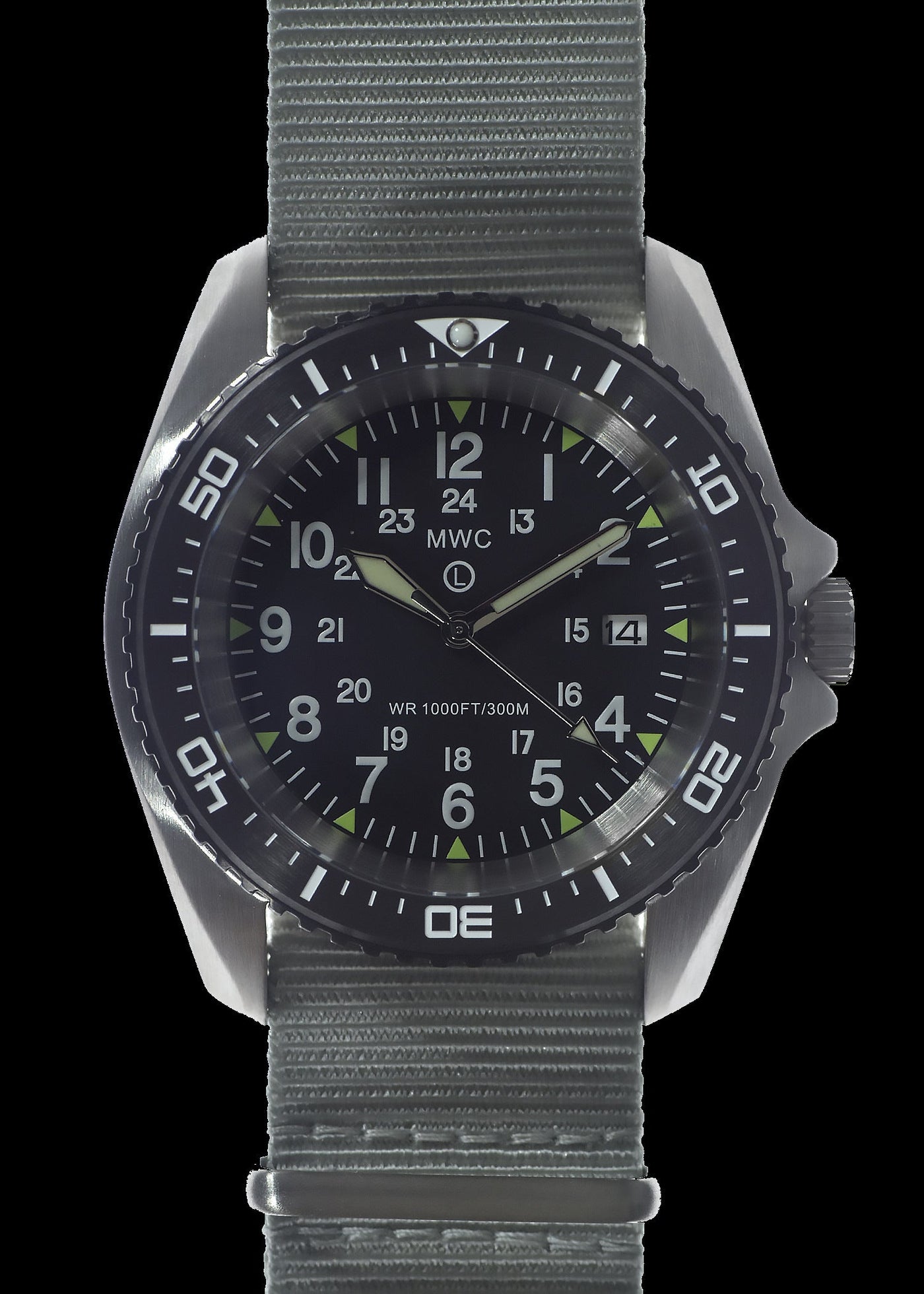 Home / MWC - Military Watch Company / Stainless Steel Militair Divers Horloge with Automatic 24 Jewel Movement, 12/24 Hour Dial Format, Sapphire Crystal and Ceramic Bezel (Tactical Solid Strap Bars) – Authentiek Militair Design